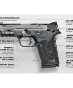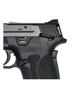 The M&P9 Shield EZ pistol ships with two 8 round magazines that feature a load-assist tab for quick, easy loading, as well as a Picatinny-style equipment rail to accommodate accessories. The pistol also features an optimal M&P pistol 18-degree grip angle for a natural point of aim, white-dot front, and adjustable white-dot rear sights, and a light, crisp trigger.